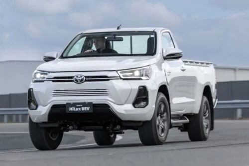 La Hilux eléctrica alcanza hasta 257 kilómetros en ciclo combinado, mientras que en conducción urbana puede extenderse hasta unos 380 kilómetros, cifras pensadas para un